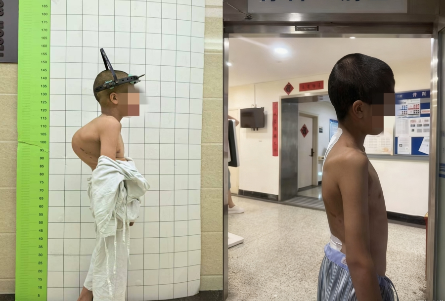 家人带他跑了多家医院,得到的答复如出一辙:脊柱侧弯已近乎150度,不仅侧凸,还有后凸,脊髓受压严重,最严重区域的脊柱基本快掉头生长,再加上肺部被挤压变形,手术可能致瘫痪,风险太高。近日,小禹来到了上海。